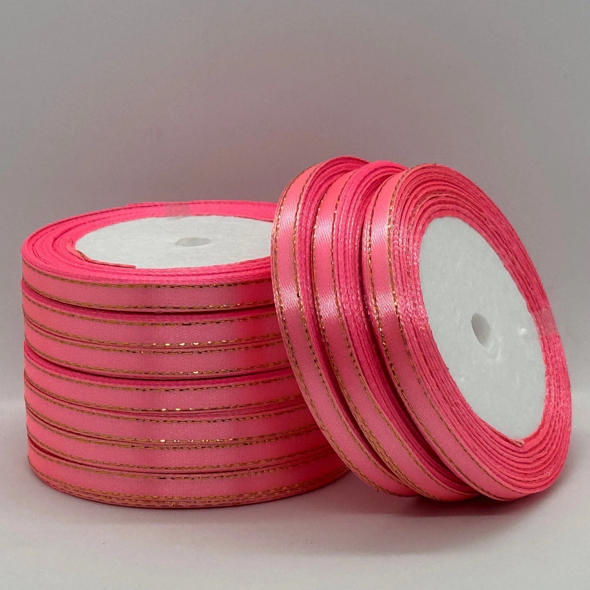 Атласна стрічка з люрекс 0,6 см+золото (22.75 м), 05 рожевий