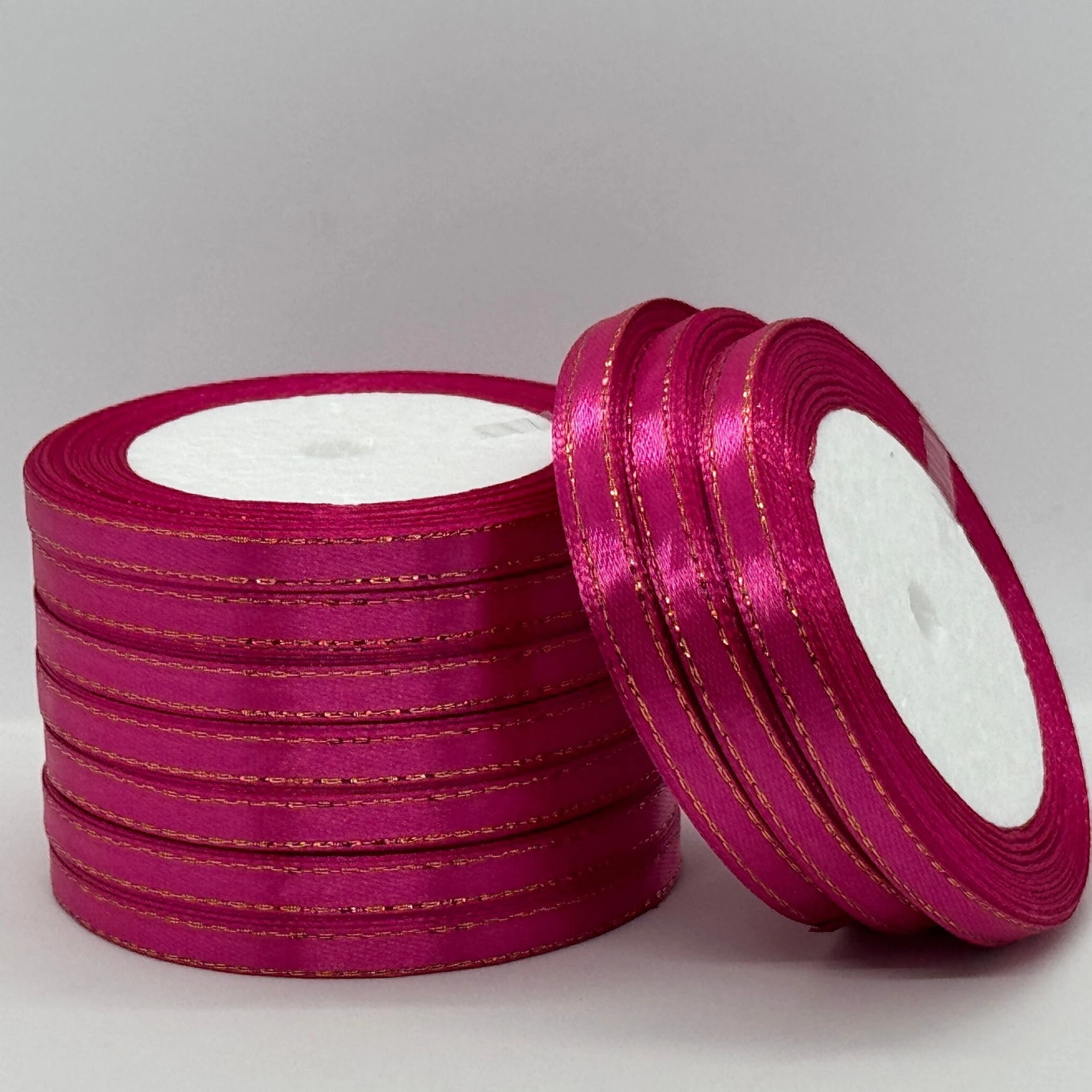Атласна стрічка з люрекс 0,6 см+золото (22.75 м), 27 малиновий