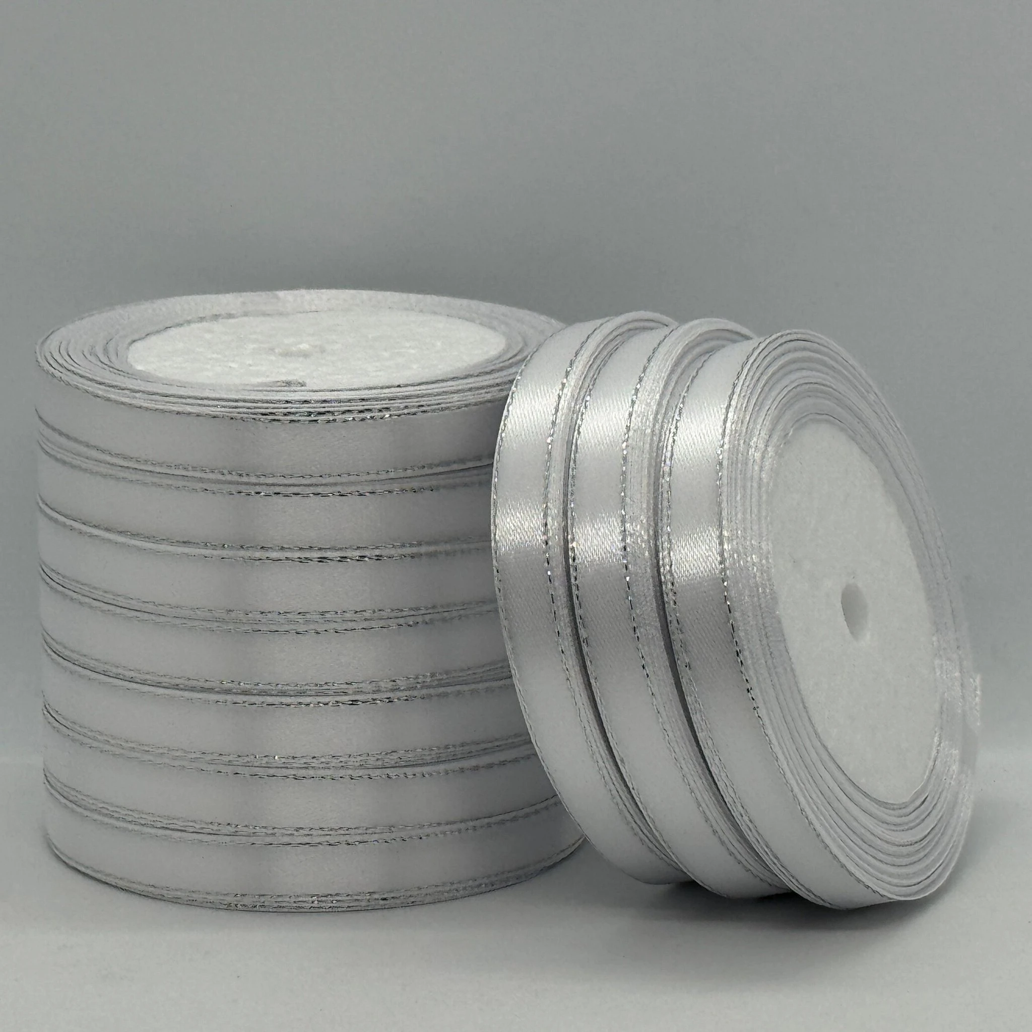 ✨ Стрічка атласна з люрексом 1 см + срібло (22.75 м) — тонка, елегантна та блискуча деталь для декору і рукоділля!
