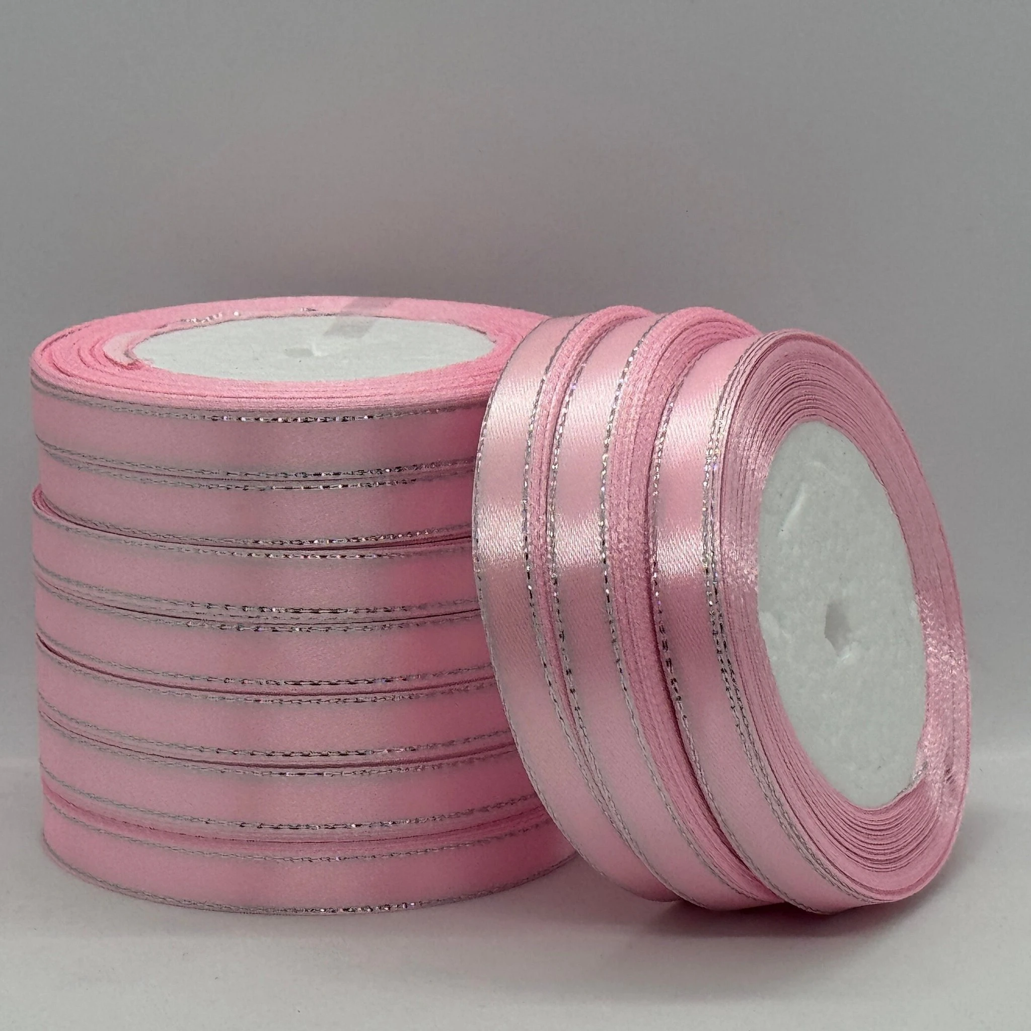 Атласна стрічка з люрекс 1 см+срібло (22.75 м), 04 світло рожевий