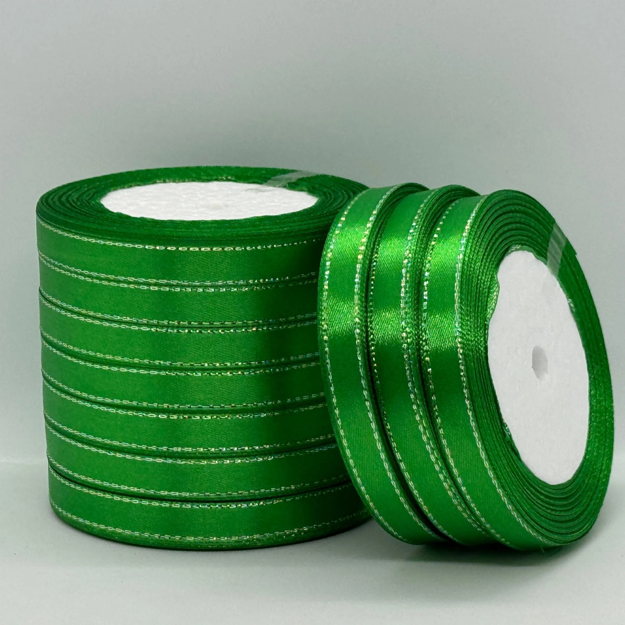 Атласна стрічка з люрекс 1 см+срібло (22.75 м), 19 зелений
