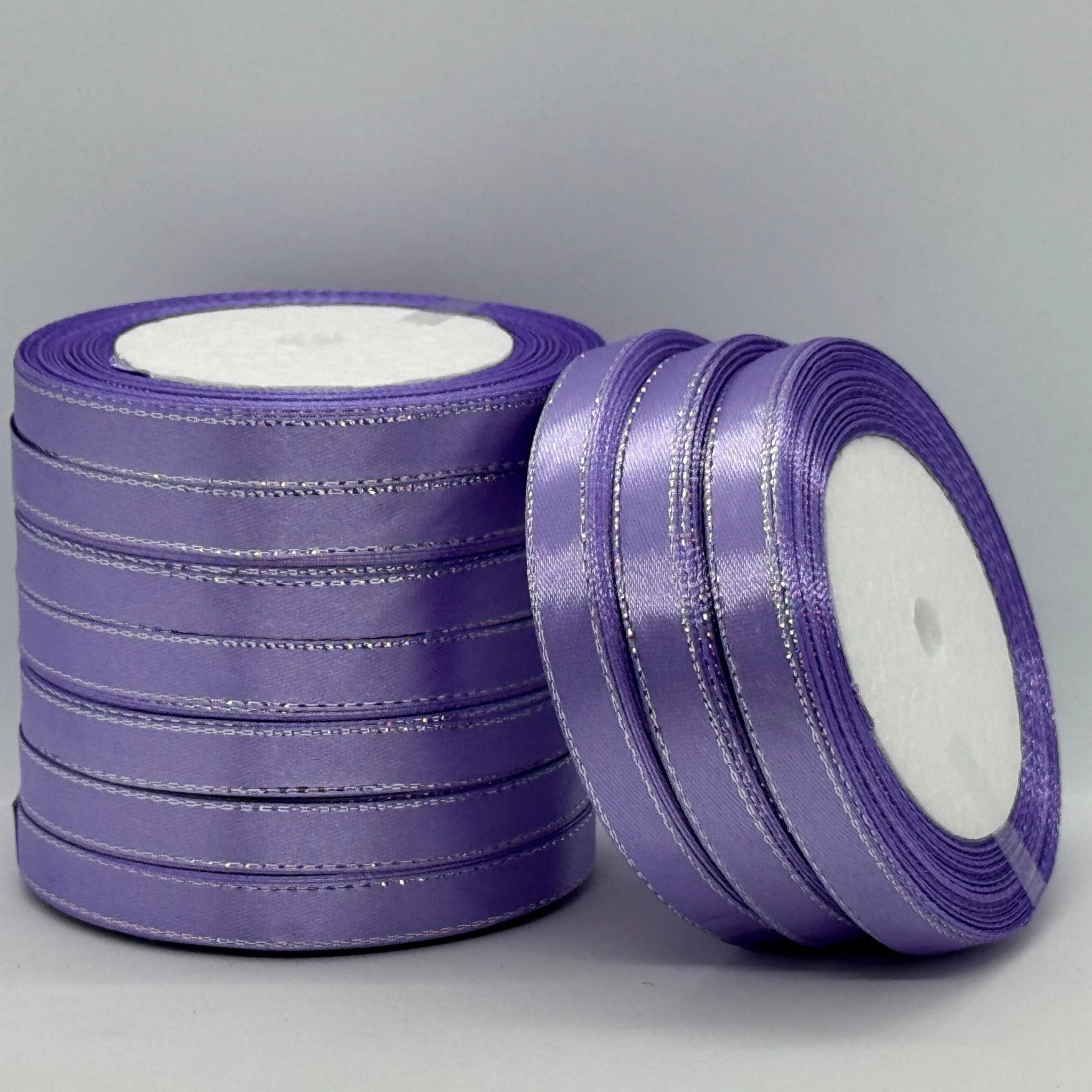 Атласна стрічка з люрекс 1 см+срібло (22.75 м), 21 фіалковий