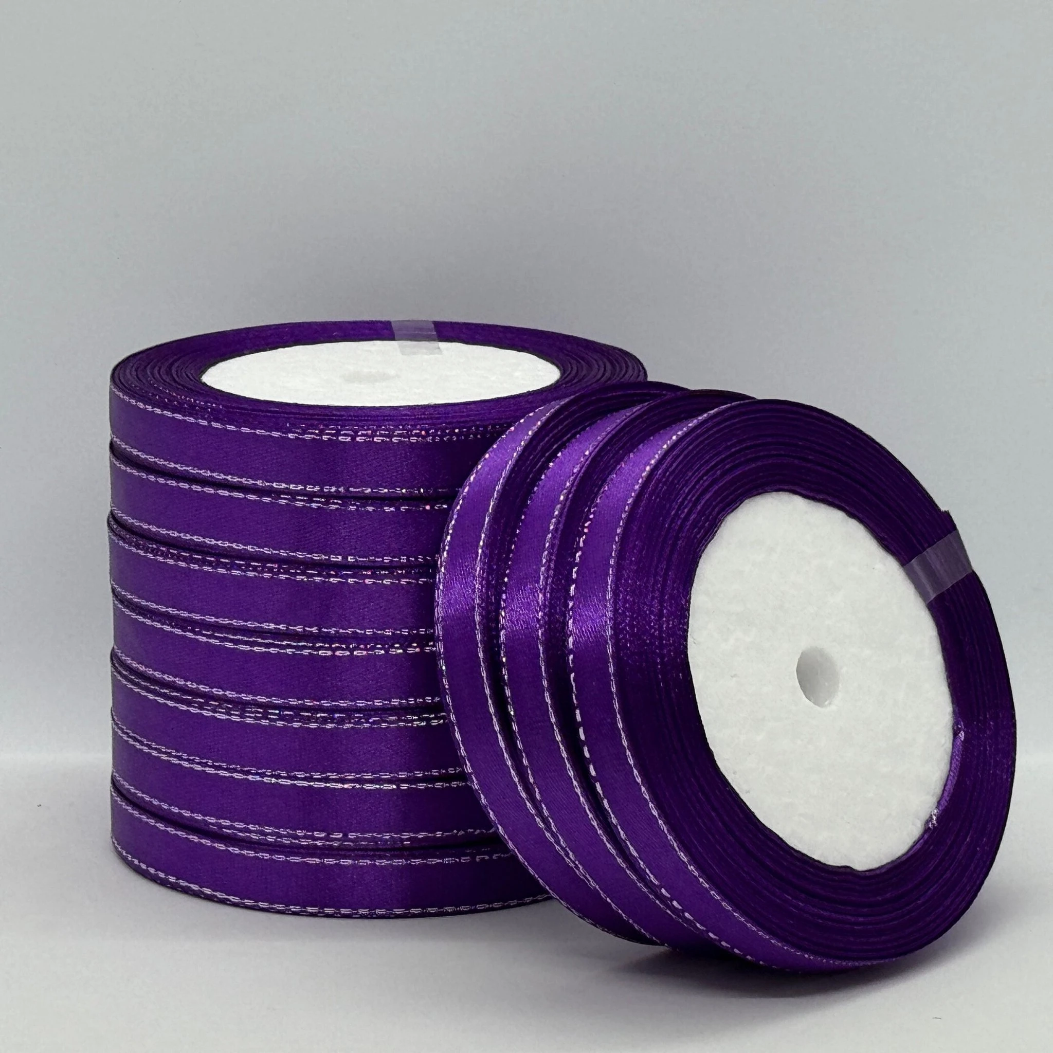 Атласна стрічка з люрекс 1 см+срібло (22.75 м), 35 фіолетовий