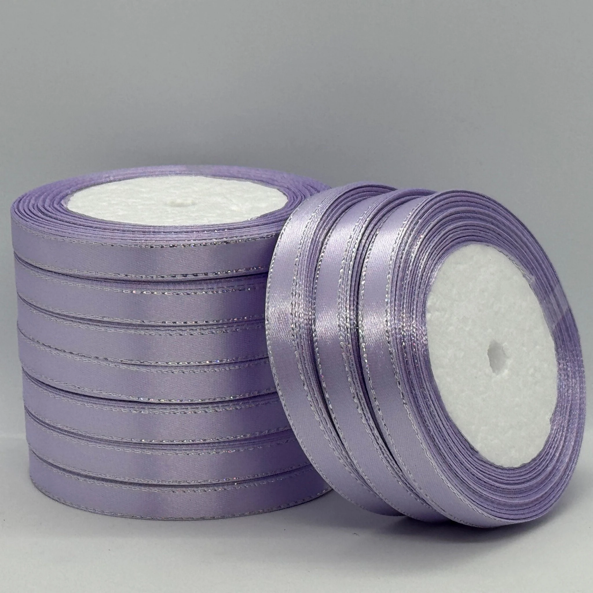 Атласна стрічка з люрекс 1 см+срібло (22.75 м), 44 світло фіалковий