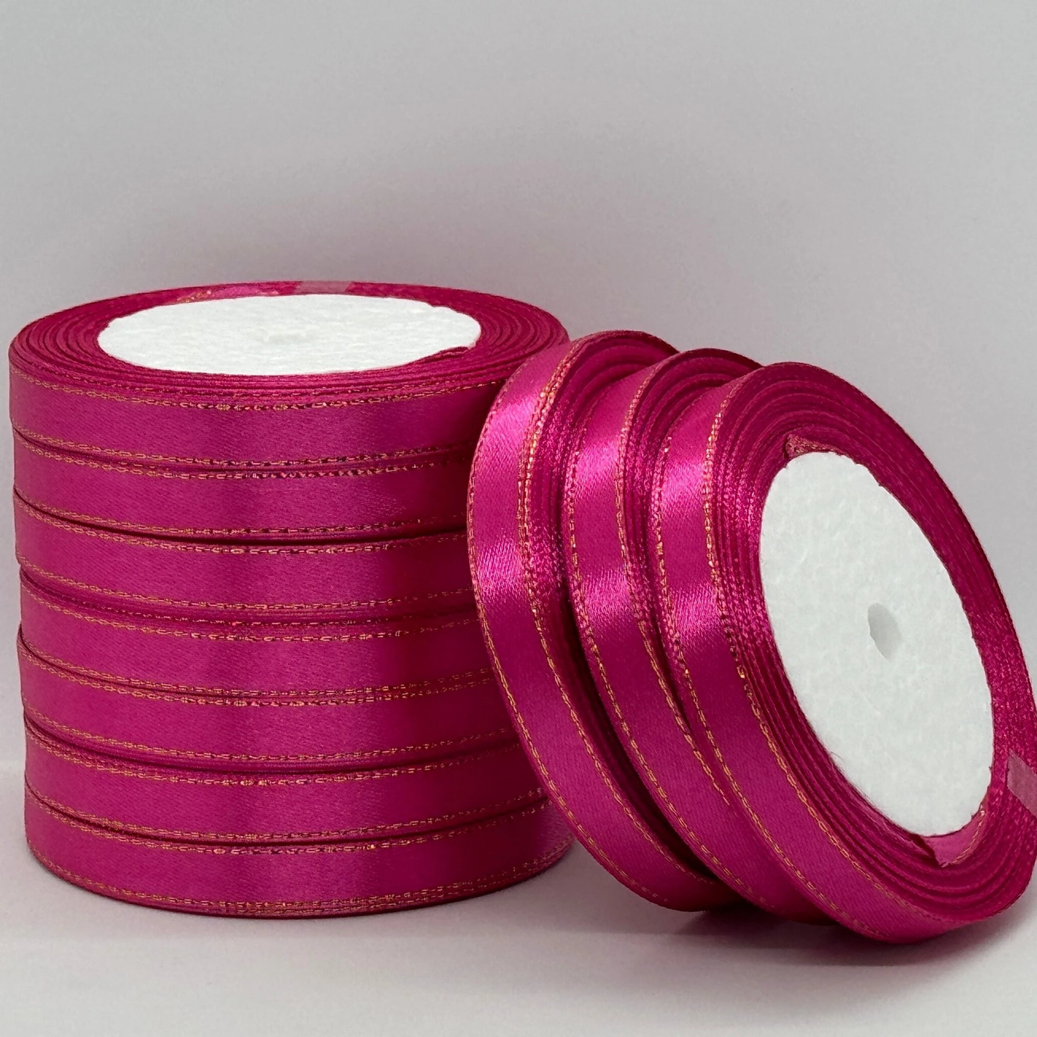 Атласна стрічка з люрекс 1 см+золото (22.75 м), 27 малиновий