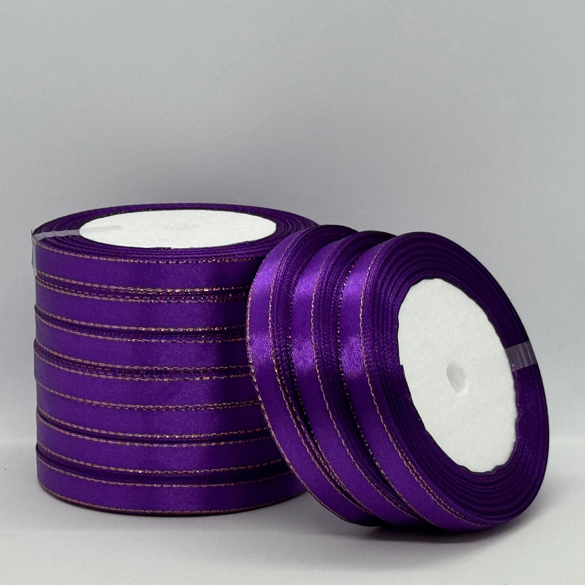 Атласна стрічка з люрекс 1 см+золото (22.75 м), 35 фіолетовий
