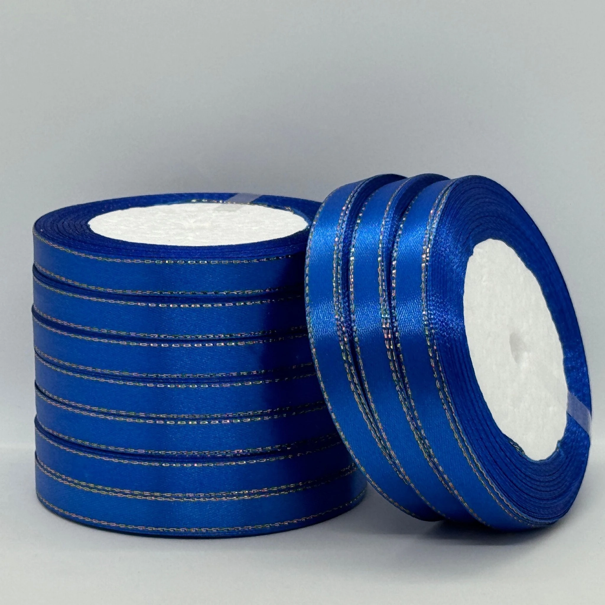 Атласна стрічка з люрекс 1 см+золото (22.75 м), 40 електрик