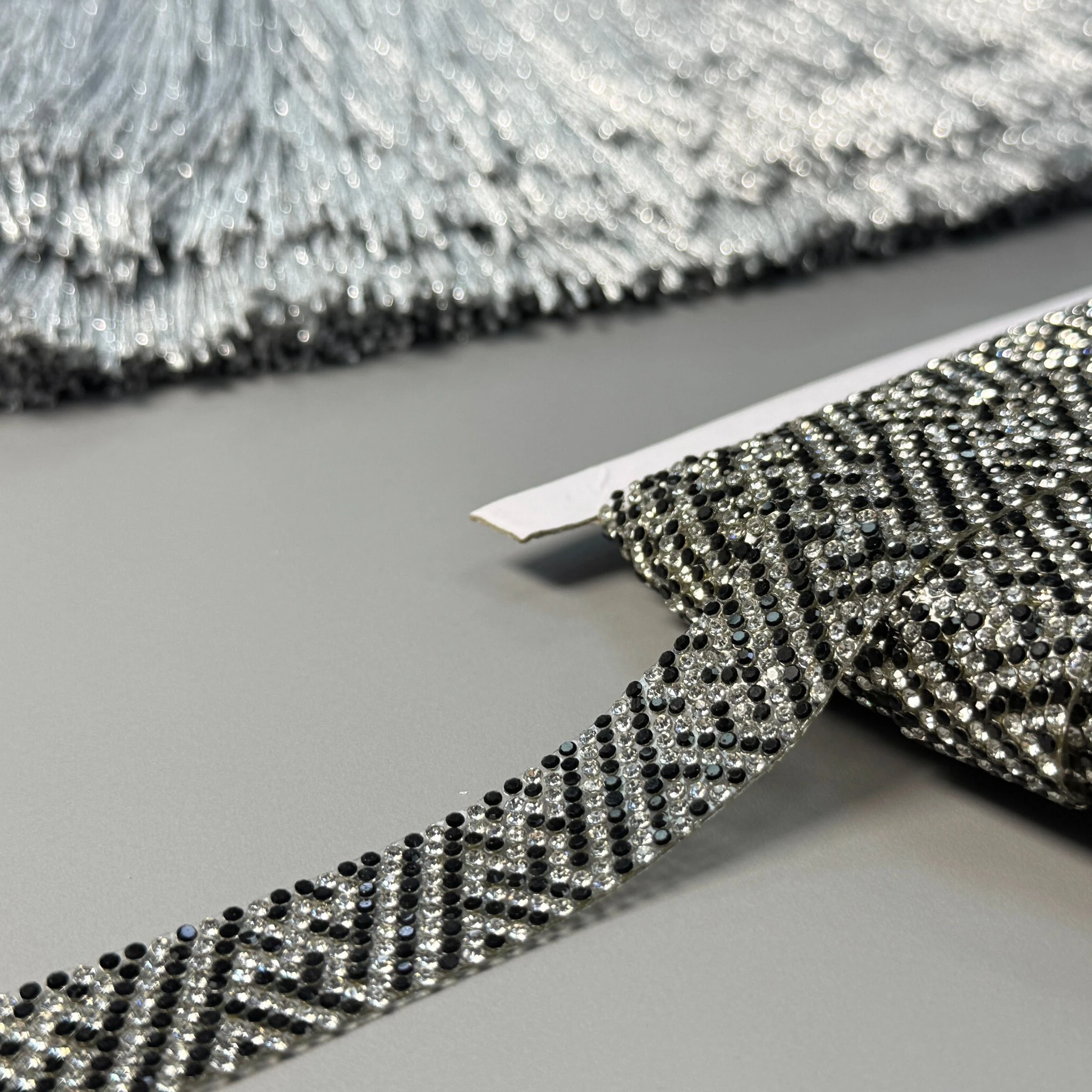 Тасьма клейова з камінням ss6-2 (10 метрів), прозрачний+чорний