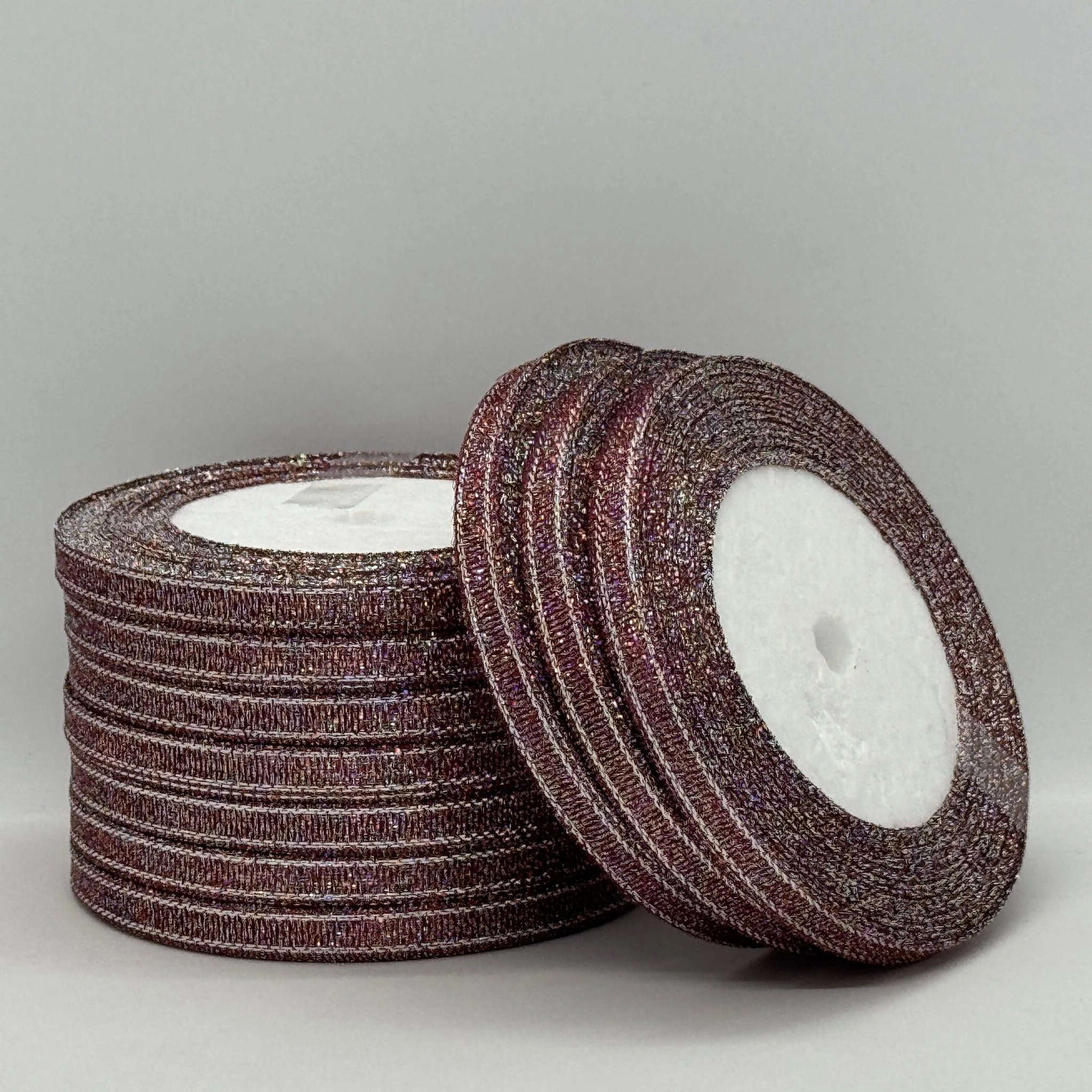 Тасьма парчева 0,6 см (25 ярдів/22,75 м.), 28 баклажан + срібло