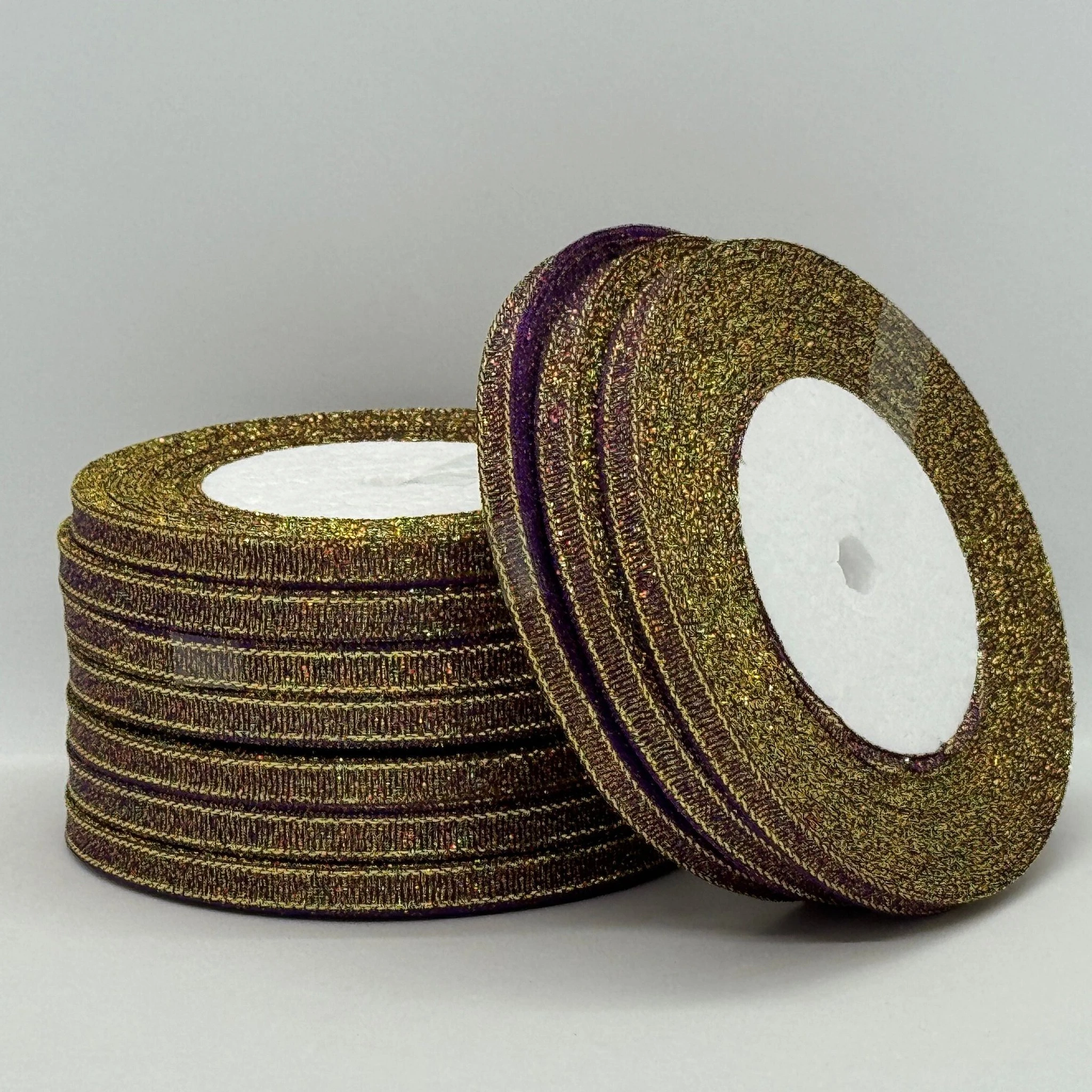 Тасьма парчева 0,6 см (25 ярдів/22,75 м.), 46 баклажан + золото