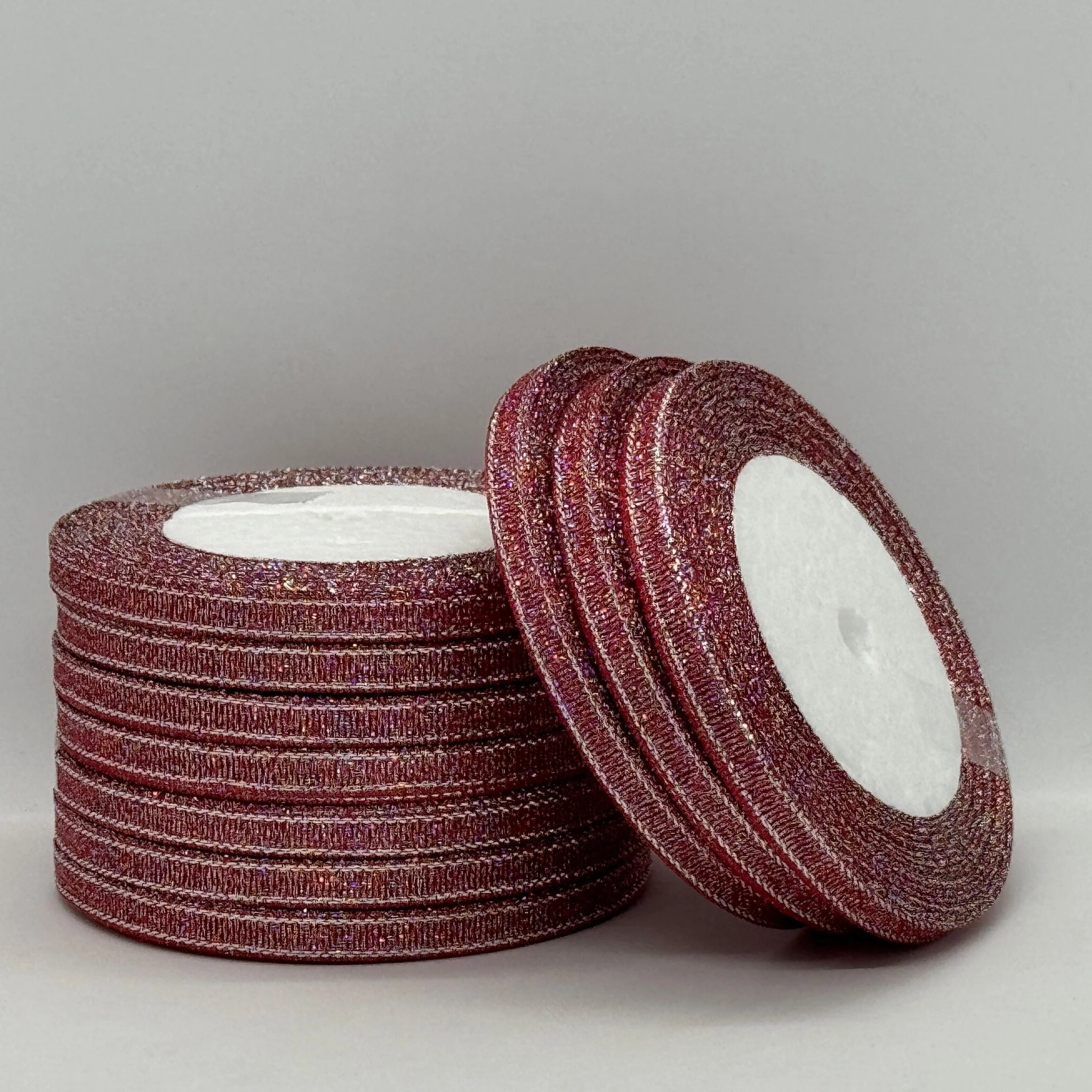Тасьма парчева 0,6 см (25 ярдів/22,75 м.), 65 червоний + срібло