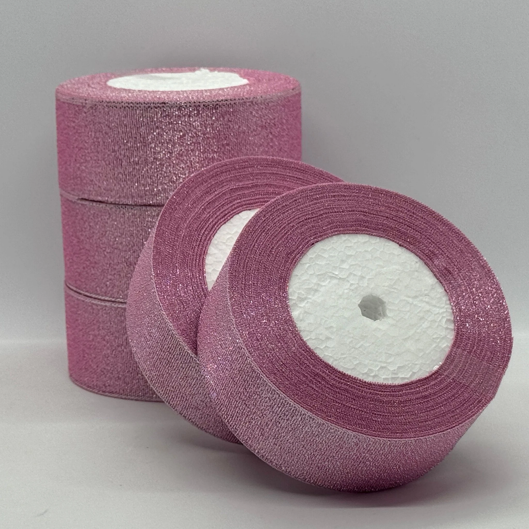 Тасьма парчева 4 см (25 ярдів/22,75 м.), 4 світло рожевий + срібло
