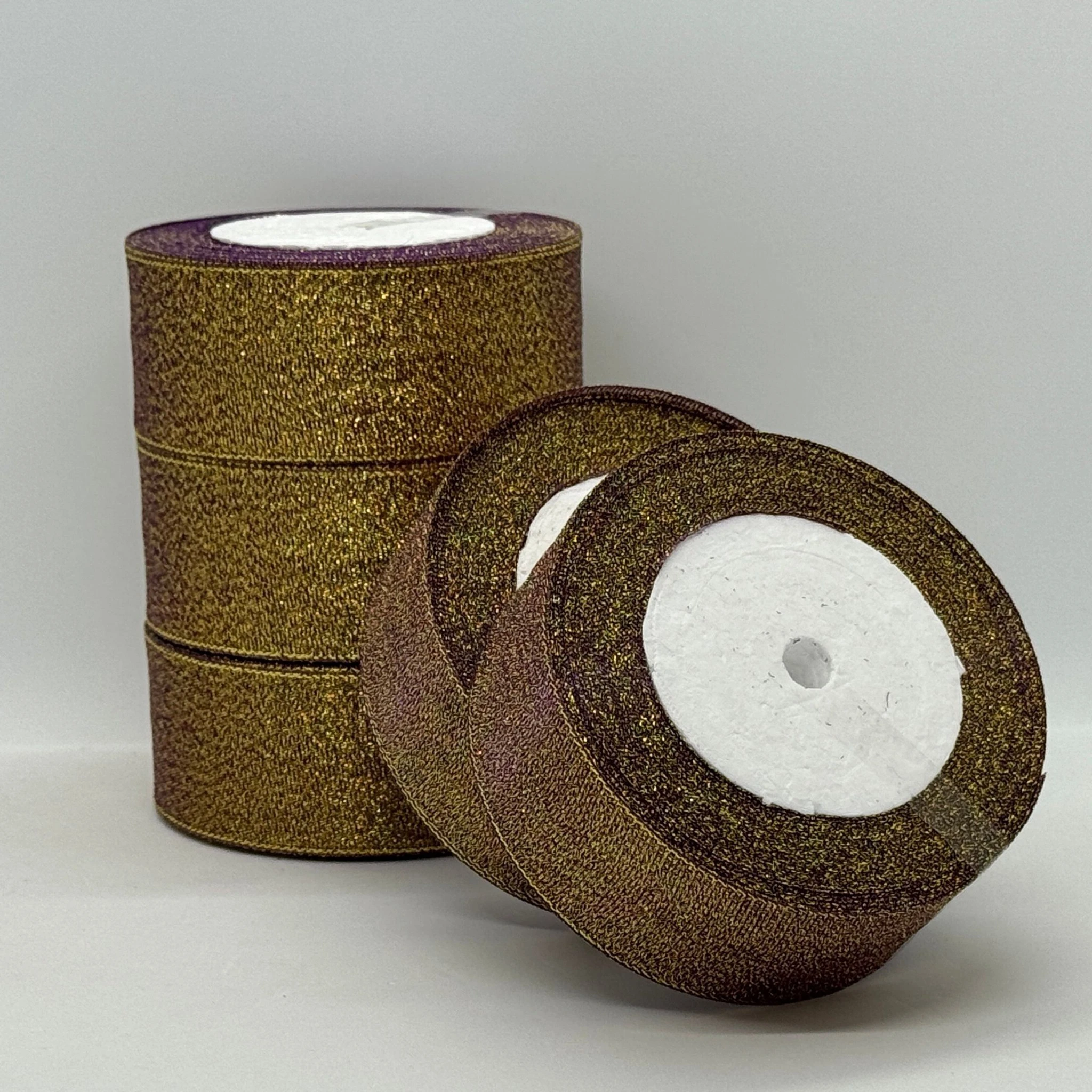 Тасьма парчева 4 см (25 ярдів/22,75 м.), 46 баклажан + золото