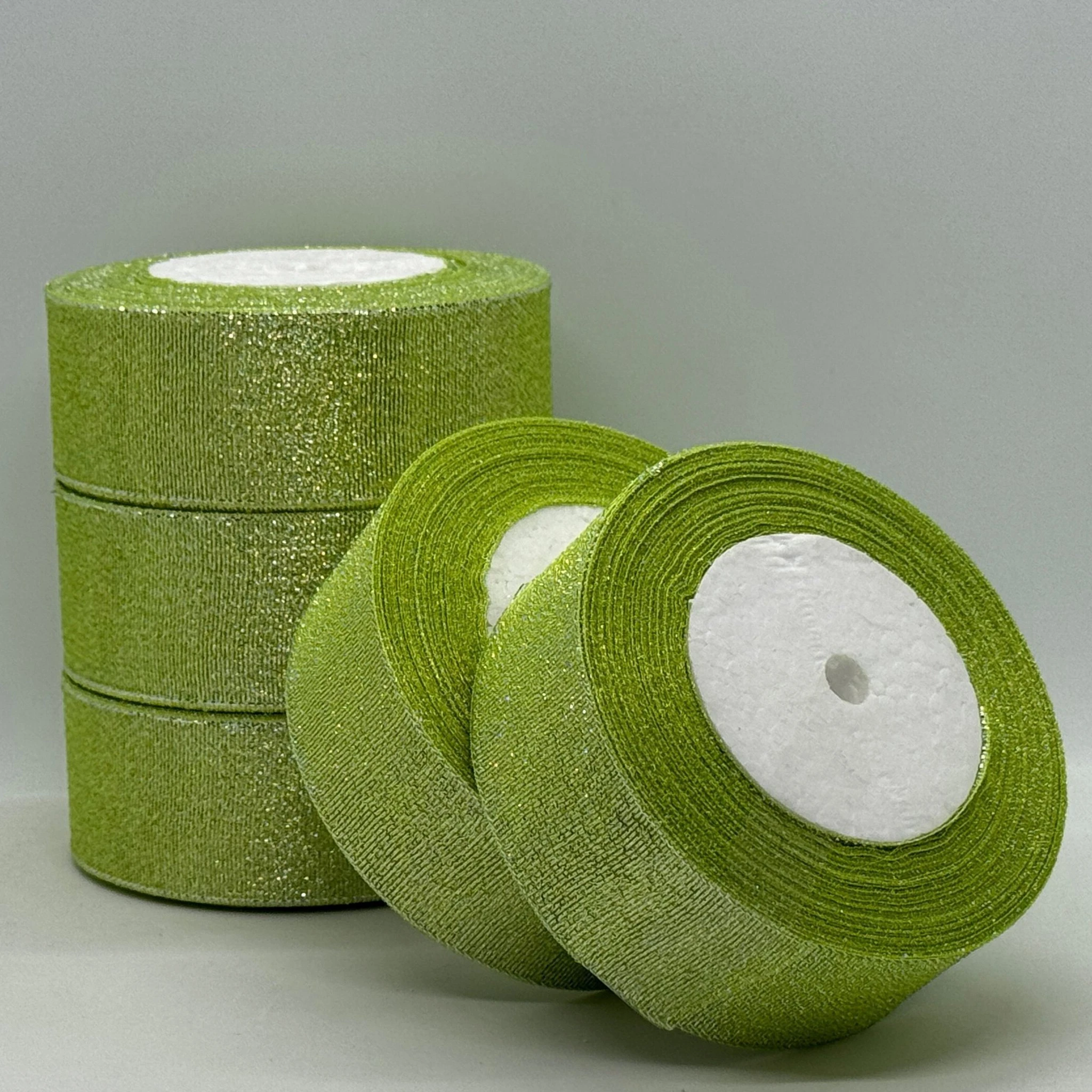 Тасьма парчева 4 см (25 ярдів/22,75 м.), 95 салатовий + срібло