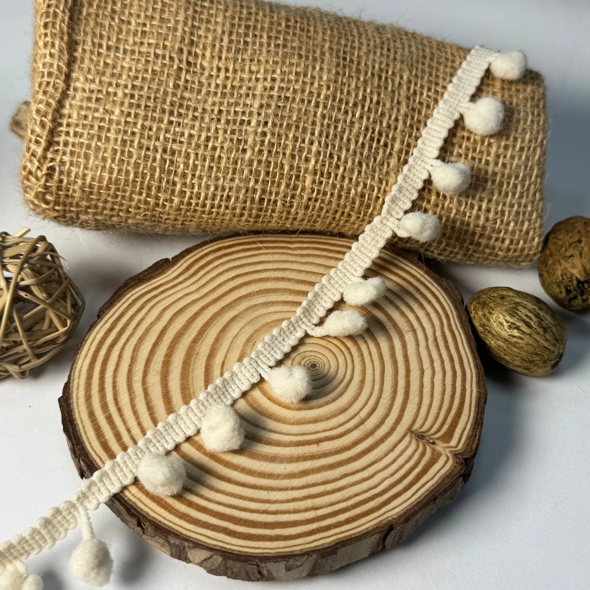 М’які помпони рівномірно розташовані на стрічці, додаючи текстури та грайливості будь-якому декору.