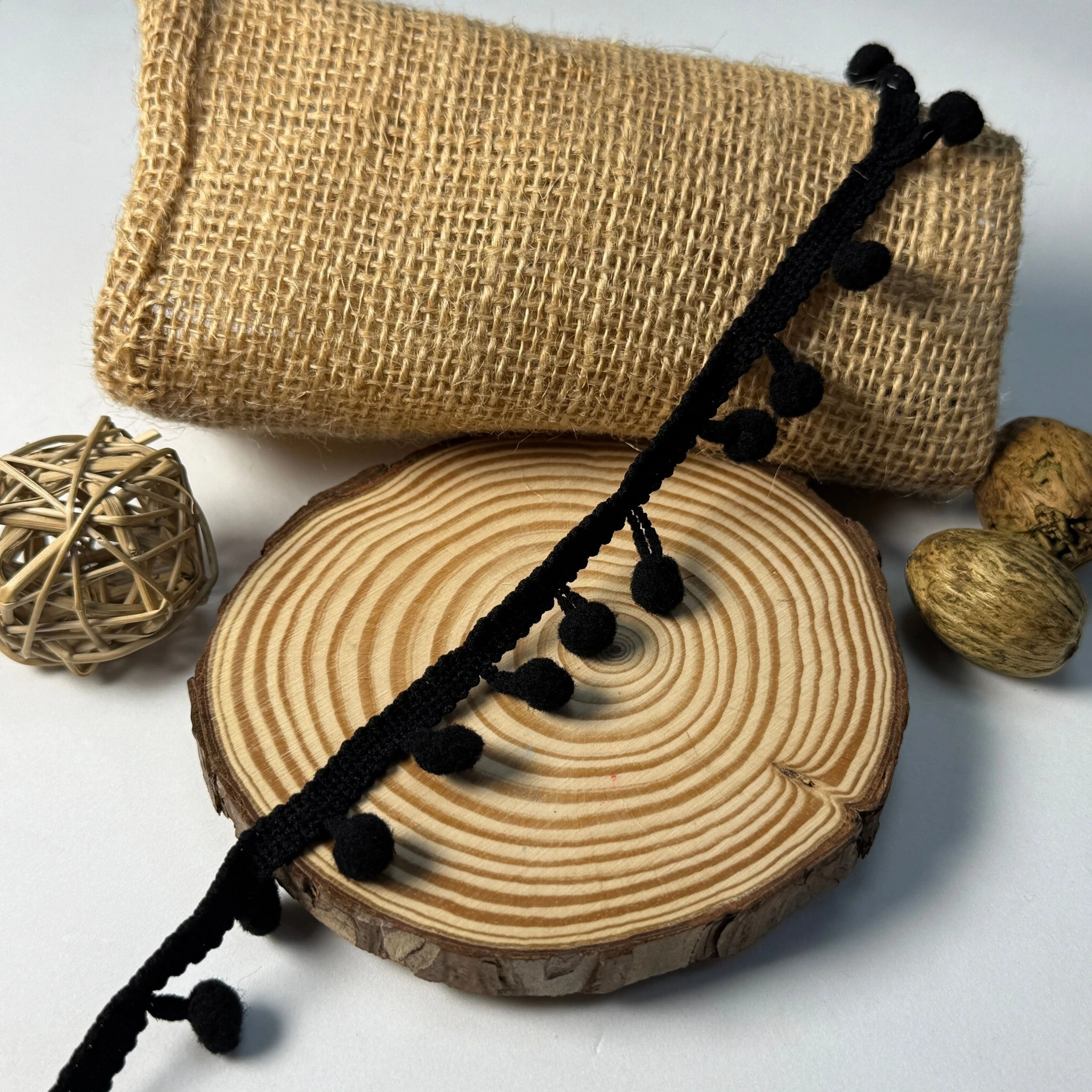 М’які помпони рівномірно розташовані на стрічці, додаючи текстури та грайливості будь-якому декору.