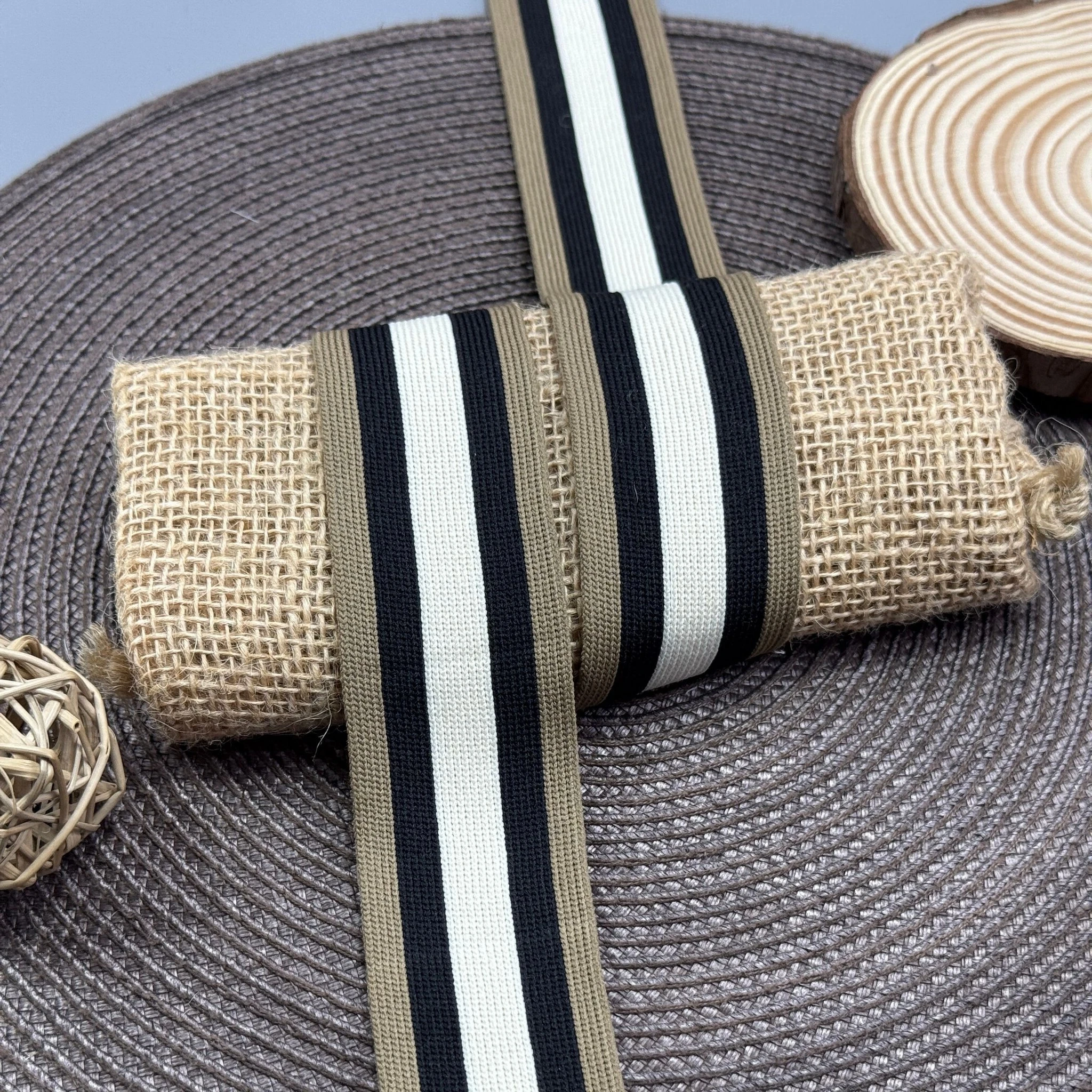 Трикотажний лампас Декор 4 см (1 м), бежевий+чорний+білий