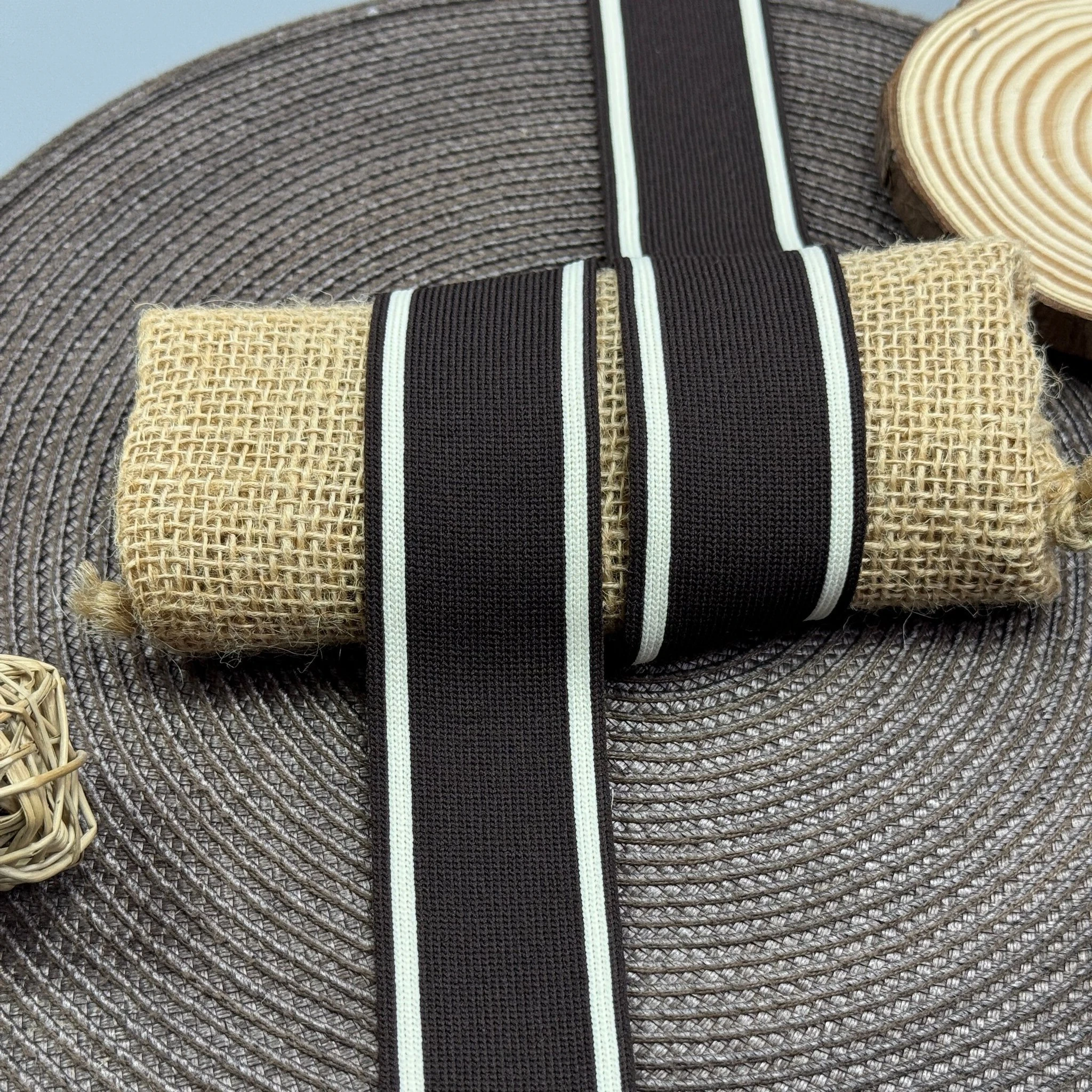 Трикотажний лампас Декор 4 см (1 м), білий+коричневий