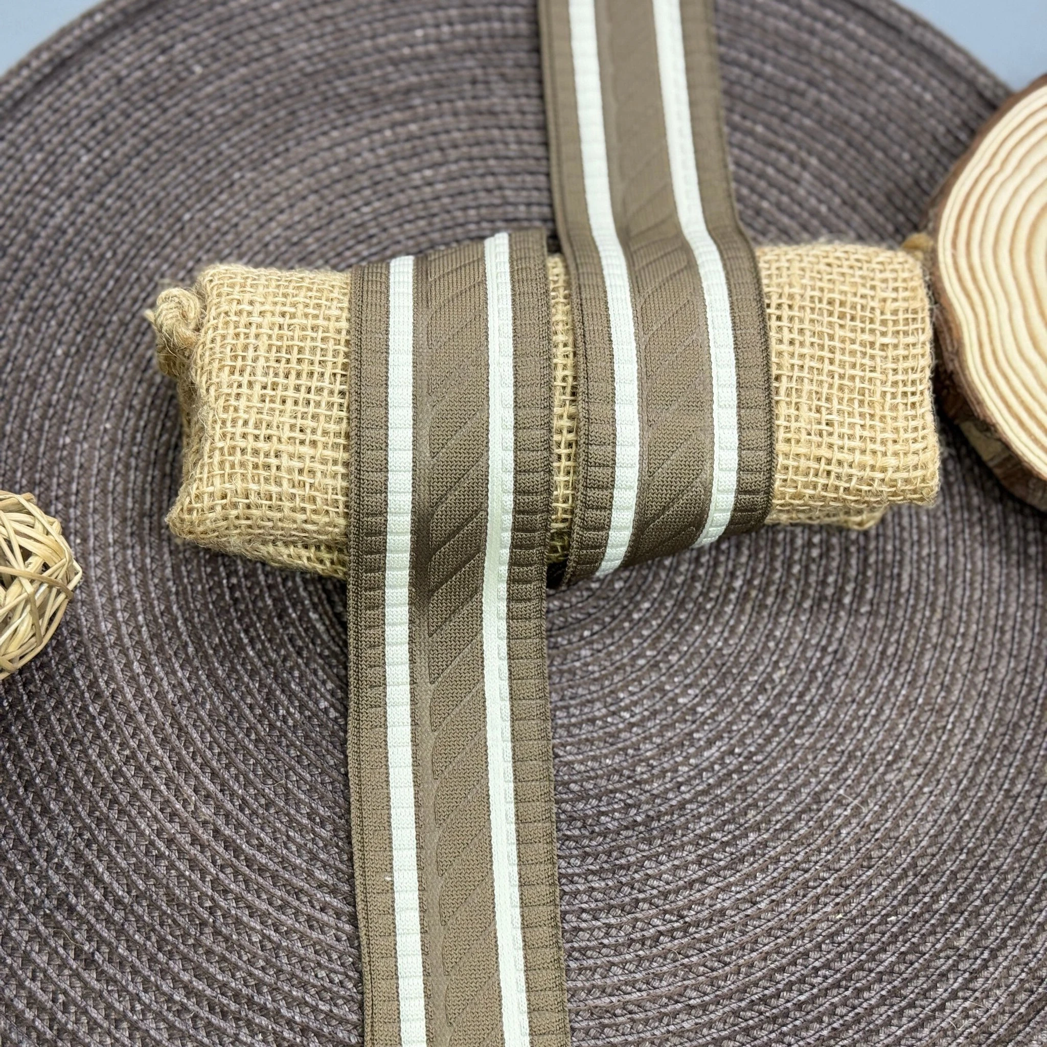 Трикотажний лампас Косичка 4 см (1 м), C:2 темно бежевий