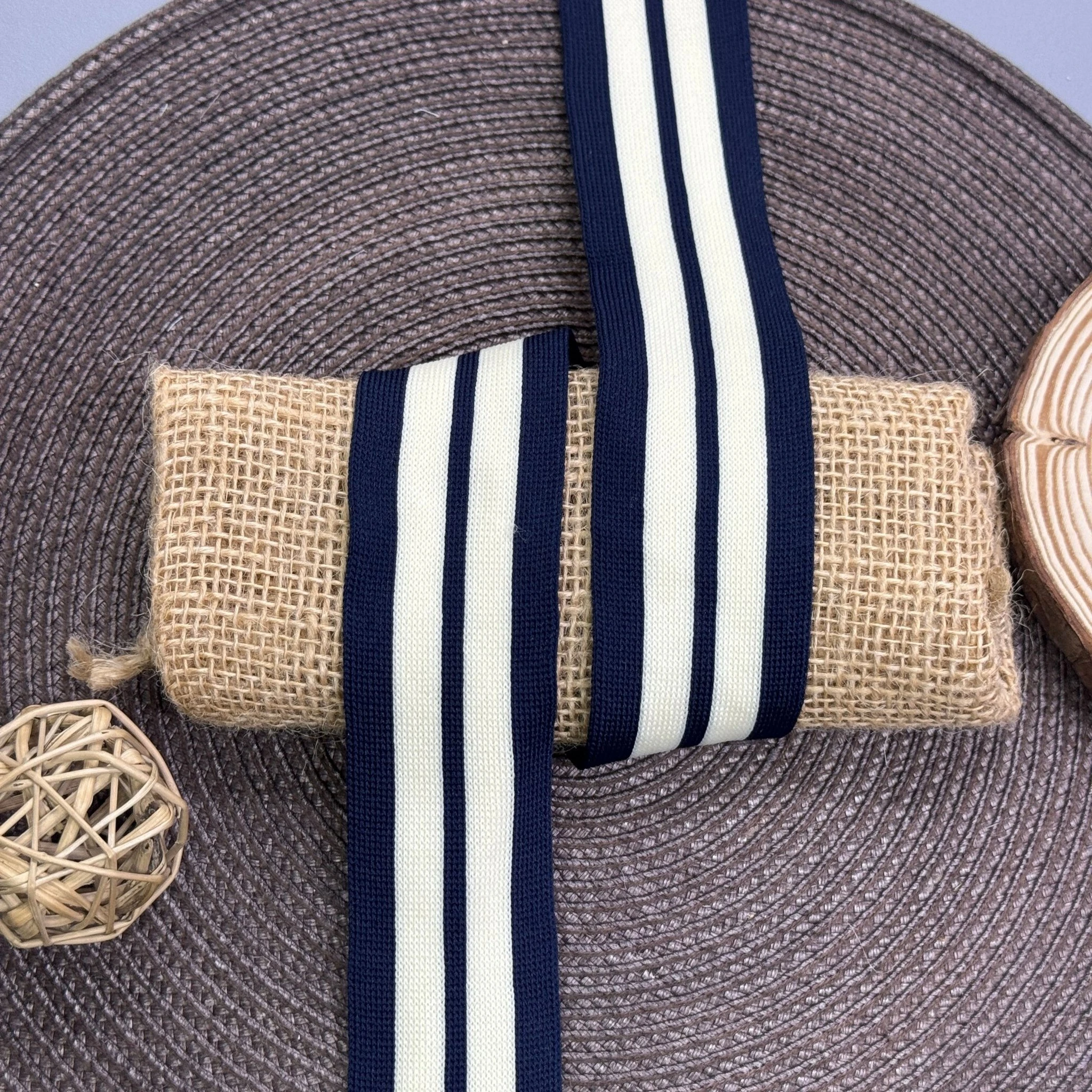 Трикотажний лампас Спорт 4 см (1 м), молочний+синій