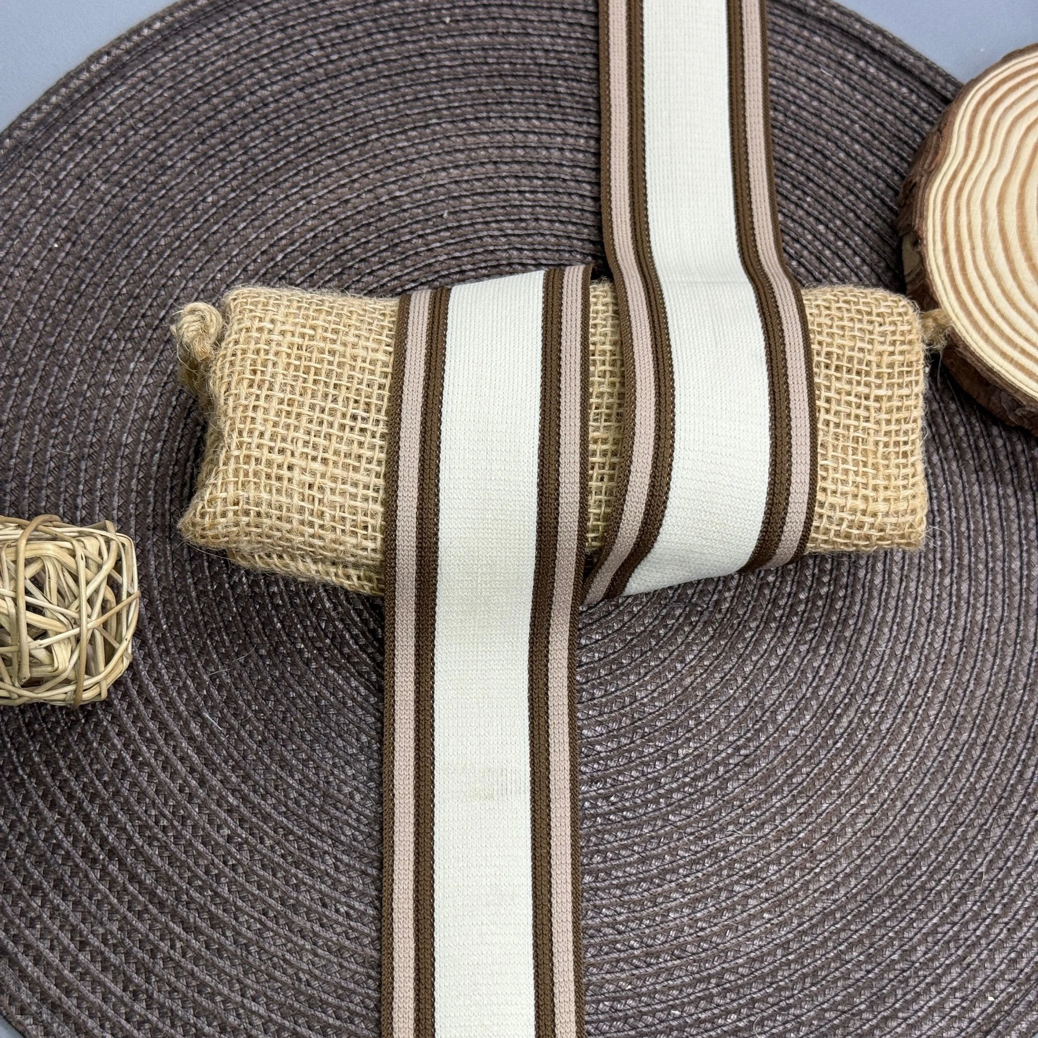 Трикотажний лампас Weekday 4 см (1 м) , молочний+бежевий