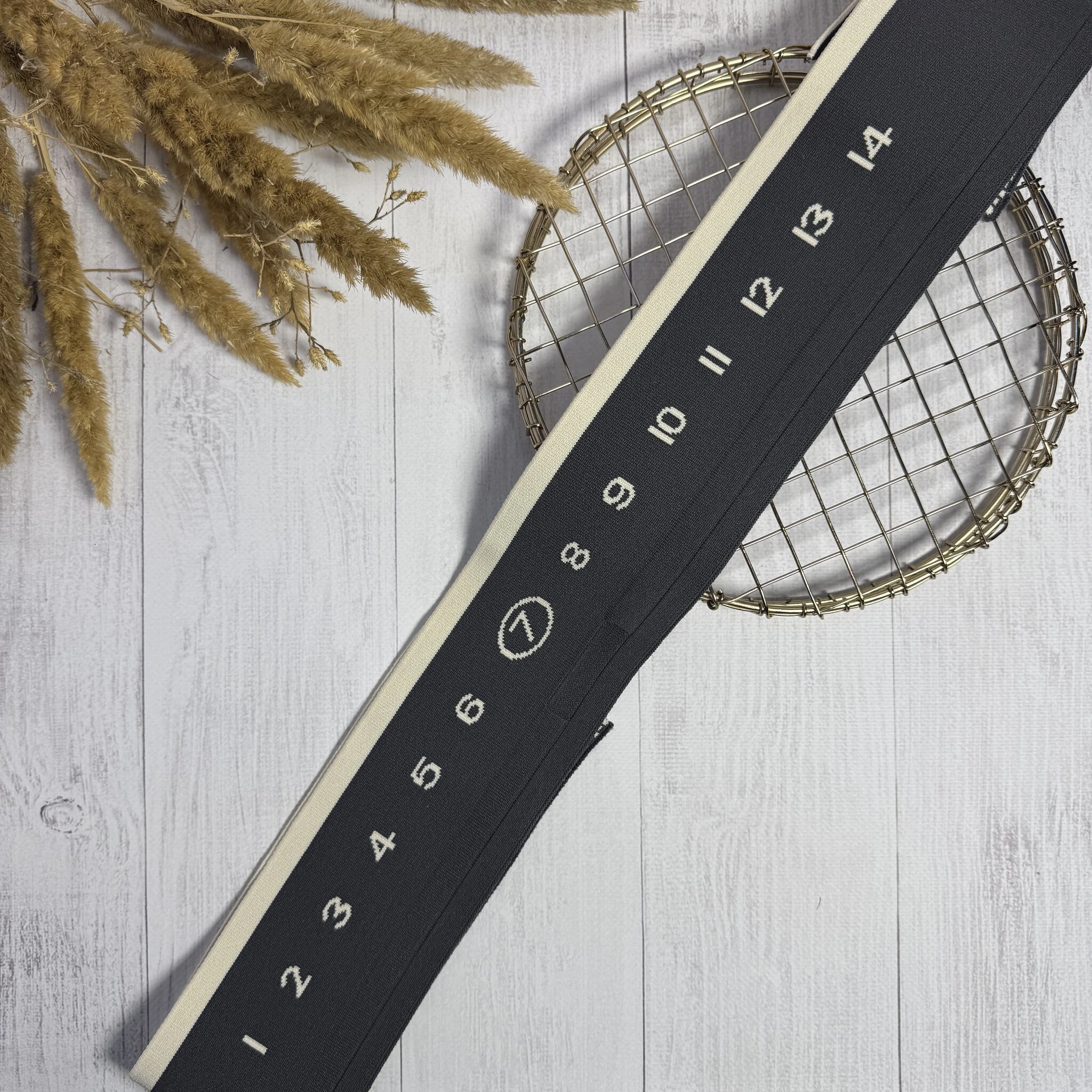 Трикотажний пояс довяз цифри 0-14 (8.5см*90 см), темний сірий
