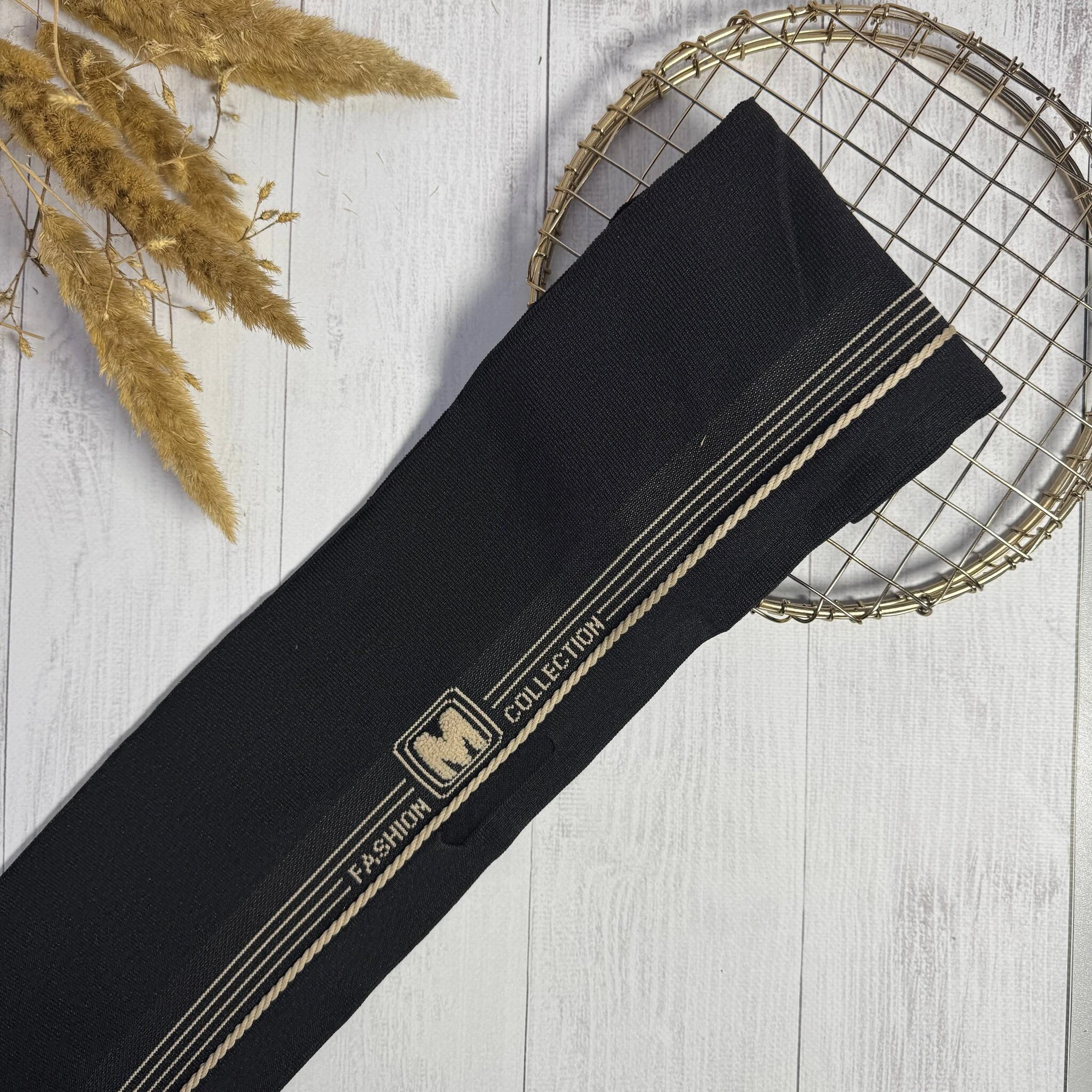 Пояс трикотажний еластичний з написом "M FASHION COLLECTION" — стильний та практичний аксесуар для вашого одягу.