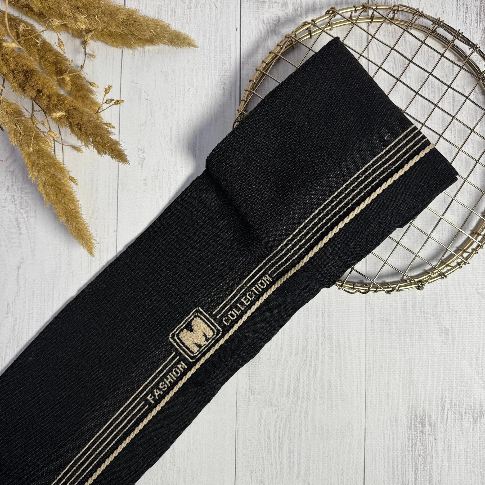 Трикотажний пояс довяз Рібана "М" FASHION COLLECTION (13 см*90 см), чорний+молочний